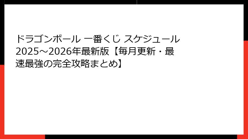 - 2025〜2026年 ドラゴンボール一番くじ最新スケジュール完全まとめ【随時更新・2025年12月3日最新版】