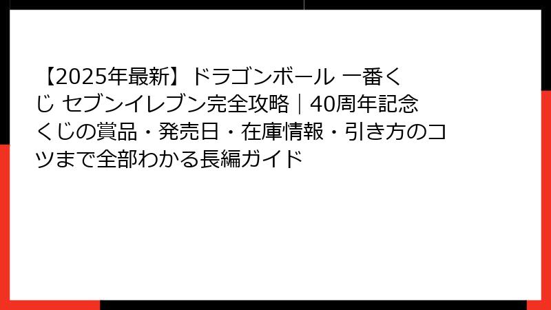 一番くじとは、バンダイスピリッツが展開するくじ引き形式のグッズ販売で、ドラゴンボール一番くじ セブンイレブンはその人気シリーズの一つです。
