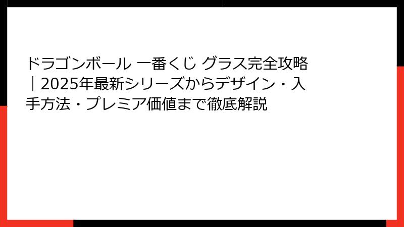 Q: ドラゴンボール 一番くじ グラスの入手確率は? A: シリーズにより異なり、2025年のSNAP COLLECTION2ではD賞で約25%。
