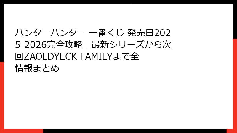ハンターハンター 一番くじ 発売日2025-2026完全攻略|最新シリーズから次回ZAOLDYECK FAMILYまで全情報まとめ