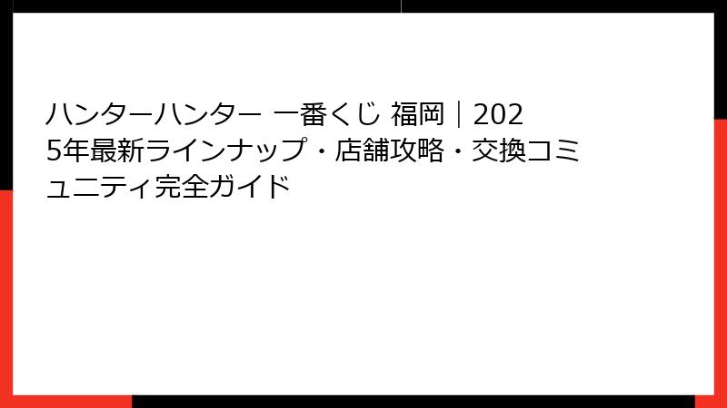 ハンターハンター 一番くじ 福岡|2025年最新ラインナップ・店舗攻略・交換コミュニティ完全ガイド