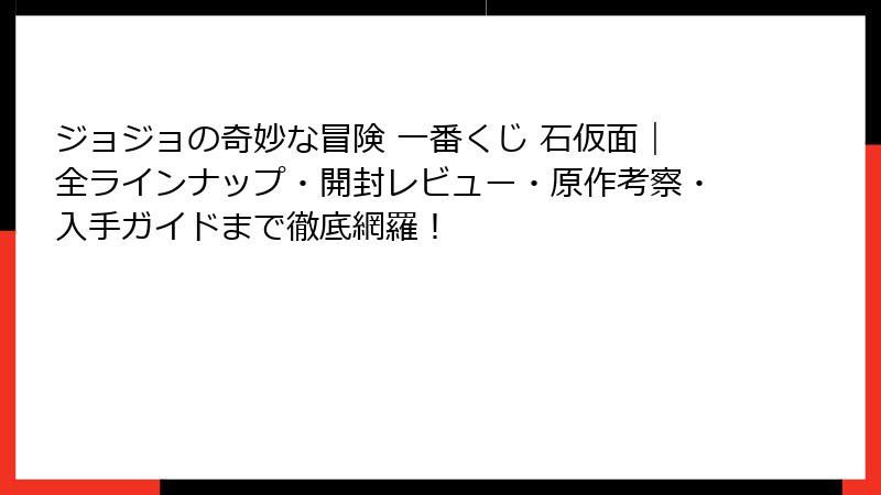- 「ジョジョの奇妙な冒険」一番くじの魅力と石仮面の謎に迫る!