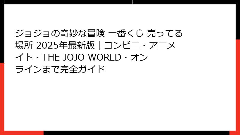 - ジョジョの奇妙な冒険 一番くじが売ってる場所を徹底解説!人気の理由と最新情報