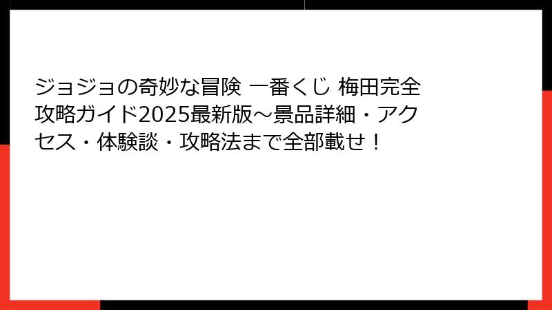 この導入部だけでも、JoJoの奇妙な冒険 一番くじ 梅田の魅力をたっぷり味わっていただけるよう、詳細に展開します。