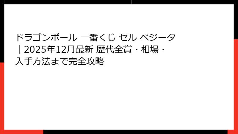 - 【2025年最新】ドラゴンボール 一番くじ「セル編・ベジータフィギュア」全賞徹底紹介&当たりランキング