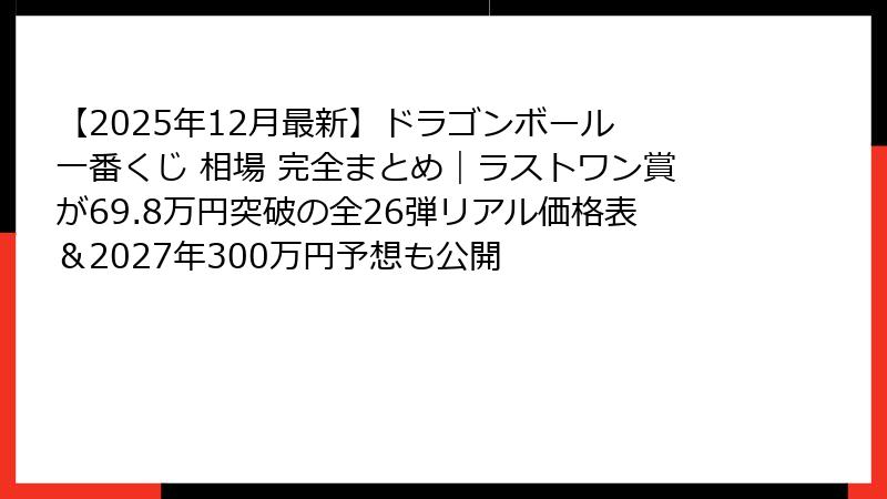 2024~2025年発売のドラゴンボール一番くじ 全賞一覧&最新相場テーブル【2025年12月4日リアルタイム更新】