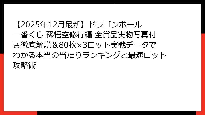 【2025年12月最新】ドラゴンボール 一番くじ 孫悟空修行編 全賞品実物写真付き徹底解説&80枚×3ロット実戦データでわかる本当の当たりランキングと最速ロット攻略術