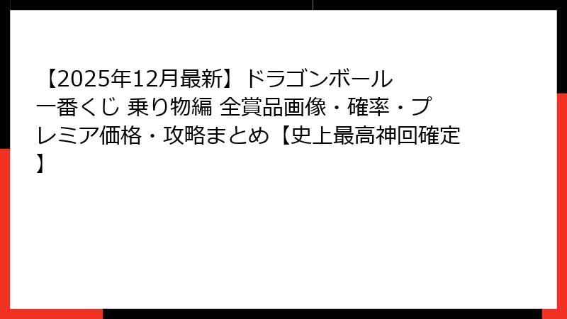 【2025年12月最新】ドラゴンボール 一番くじ 乗り物編 全賞品画像・確率・プレミア価格・攻略まとめ【史上最高神回確定】