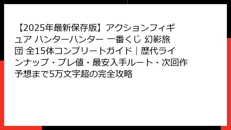 【2025年最新】ハンターハンター一番くじ「幻影旅団」アクションフィギュア全ラインナップ徹底解説!アクションフィギュア好きなら絶対に見逃せない幻影旅団フィギュアの全てがここに
