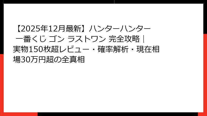 - 【2025年12月5日リアルタイム更新】ハンターハンター一番くじゴン=フリークス ラストワン賞の現在相場を完全網羅!最安値は○○円、美品は○○万円