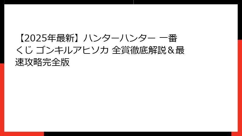 - 過去のハンターハンター一番くじ相場と2025年版のリセール価値予測