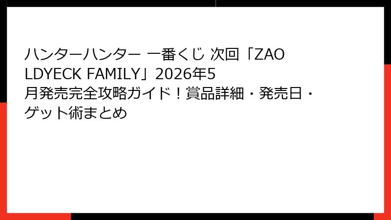 - 次回一番くじ「HUNTER×HUNTER ZAOLDYECK FAMILY」の全貌!発売日・価格・賞品一覧