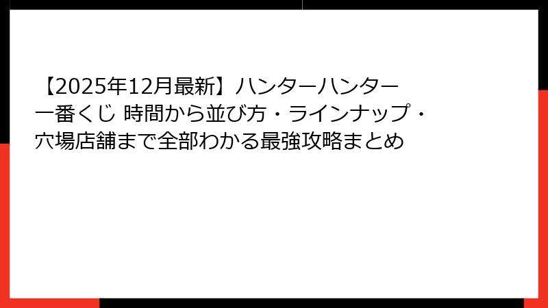 【2025年12月最新】ハンターハンター一番くじ 時間から並び方・ラインナップ・穴場店舗まで全部わかる最強攻略まとめ