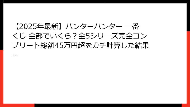 ハンターハンター一番くじがまた来た!2025年現在までの全シリーズ総まとめ