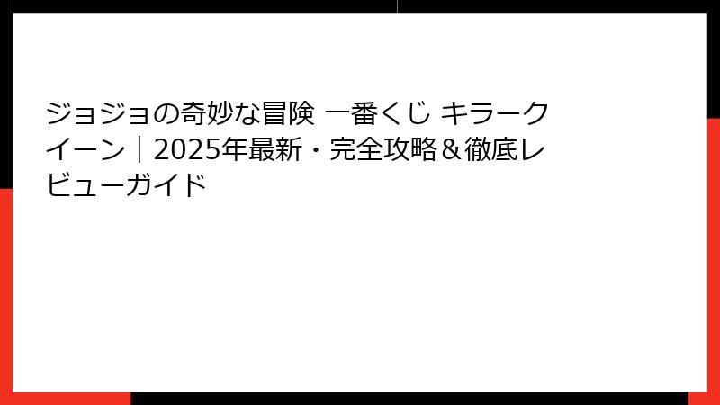 ジョジョの奇妙な冒険 一番くじ キラークイーン|2025年最新・完全攻略&徹底レビューガイド