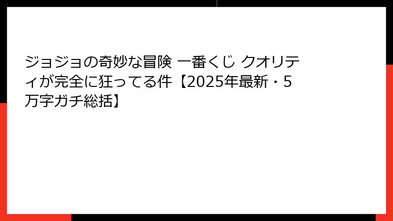 - 2025年最新!ジョジョの奇妙な冒険 一番くじのクオリティがヤバすぎる理由