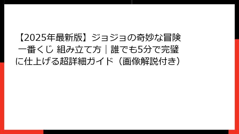 準備はいいですか?あなたの大切なジョジョフィギュアを、最高の状態で完成させるための旅が、今始まります。