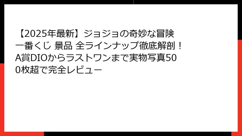 - 【2025年最新】ジョジョの奇妙な冒険 一番くじ 全ラインナップ徹底解説!景品一覧まとめ