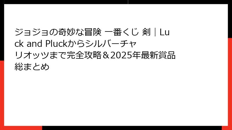ジョジョの奇妙な冒険 一番くじ 剣|Luck and Pluckからシルバーチャリオッツまで完全攻略&2025年最新賞品総まとめ