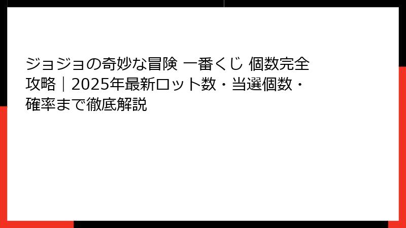 ジョジョの奇妙な冒険 一番くじ 個数完全攻略|2025年最新ロット数・当選個数・確率まで徹底解説