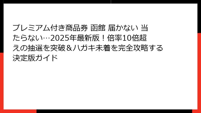 - 【2025年最新】函館プレミアム付き商品券が「当たらない」「届かない」と悲鳴続出…あなたも同じ悩みを抱えていませんか?