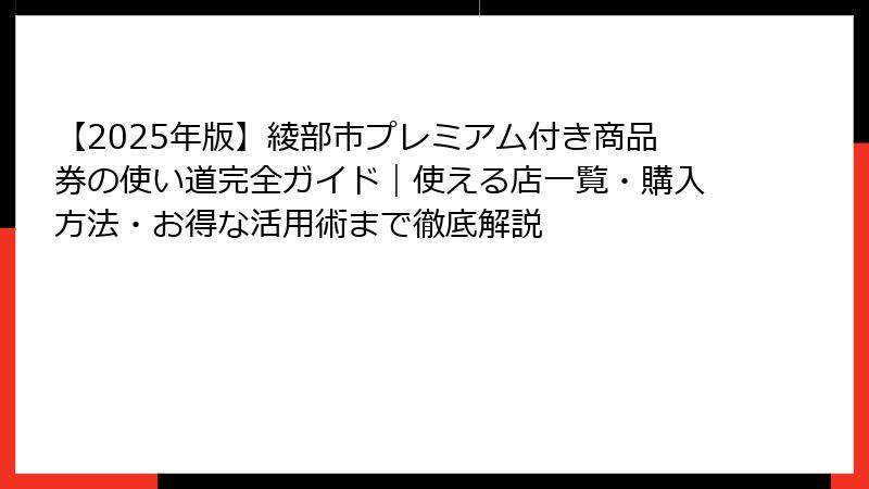 プレミアム付き商品券 綾部市の使い道や使える店についても、後ほど触れますが、まずは基本的な理解を深めましょう。
