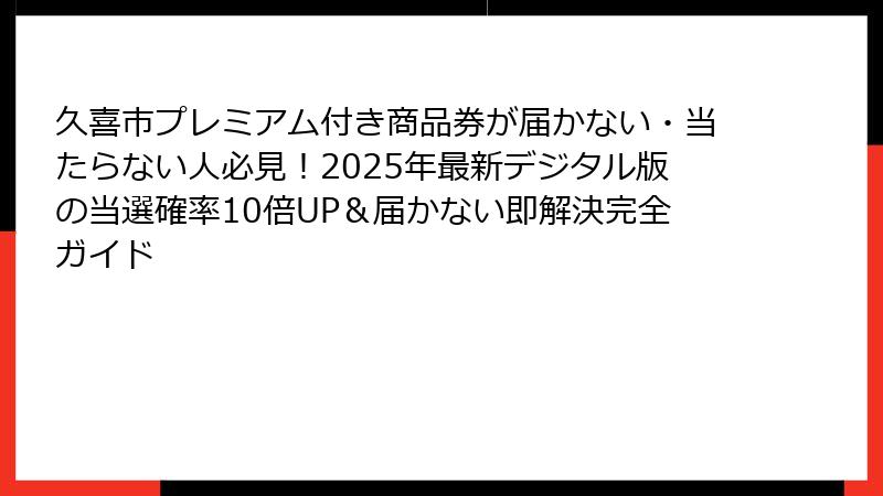 - 久喜市のプレミアム付き商品券が届かない・当たらない!2025年最新の原因と解決策を徹底ガイド