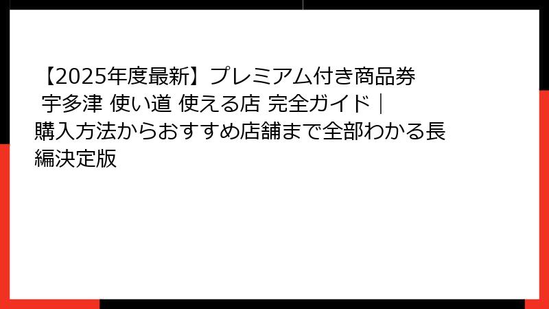- プレミアム付き商品券の購入方法と注意点 – 宇多津で賢くゲットするコツ