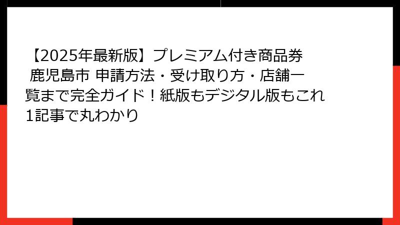 【2025年最新版】プレミアム付き商品券 鹿児島市 申請方法・受け取り方・店舗一覧まで完全ガイド!紙版もデジタル版もこれ1記事で丸わかり