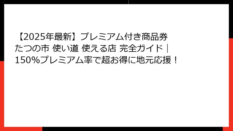 【2025年最新】プレミアム付き商品券 たつの市 使い道 使える店 完全ガイド|150%プレミアム率で超お得に地元応援!