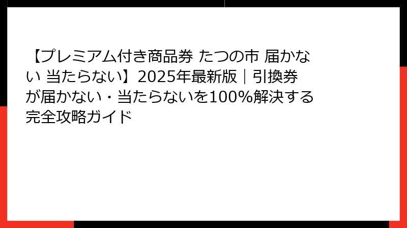 【プレミアム付き商品券 たつの市 届かない 当たらない】2025年最新版|引換券が届かない・当たらないを100%解決する完全攻略ガイド