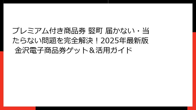 プレミアム付き商品券 竪町 届かない・当たらない問題を完全解決!2025年最新版 金沢電子商品券ゲット&活用ガイド