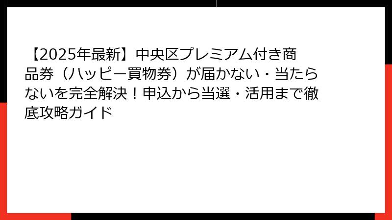 - 中央区プレミアム付き商品券(ハッピー買物券)とは?2025年最新情報と「届かない・当たらない」問題の概要