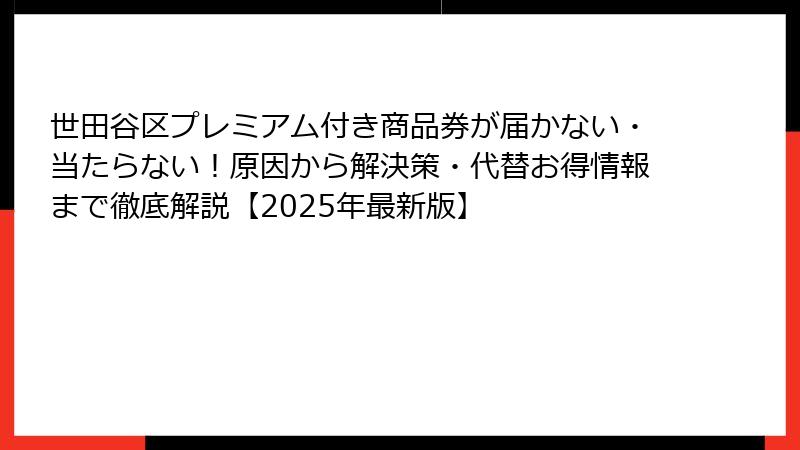 この記事では、そんな世田谷区プレミアム付き商品券のトラブル実態を徹底的に掘り下げ、2025年12月現在の最新情報を基に、原因分析から解決策までを詳しく解説します。