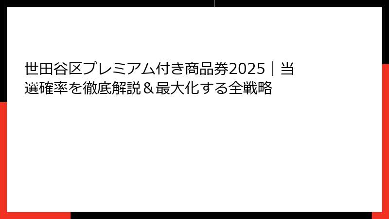 - 当選確率を最大化!世田谷区プレミアム付き商品券応募のコツと戦略