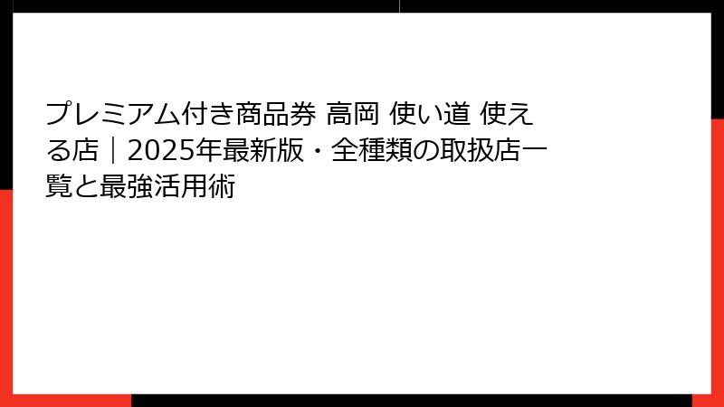 - プレミアム付き商品券 高岡の効果的な使い方:複数種類の併用Tipsとメリット分析