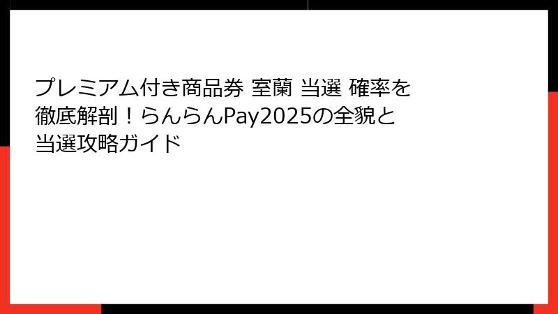 - 室蘭市のプレミアム付き商品券「らんらんPay」とは?当選確率のリアルを徹底解剖!