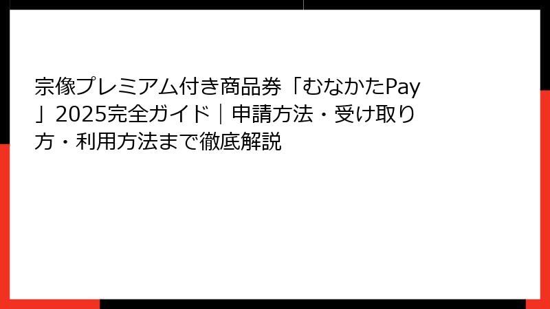 - 宗像プレミアム付き商品券『むなかたPay』とは?概要と2025年の最新情報