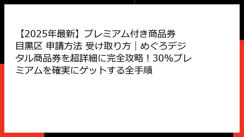 【2025年最新】プレミアム付き商品券 目黒区 申請方法 受け取り方|めぐろデジタル商品券を超詳細に完全攻略!30%プレミアムを確実にゲットする全手順