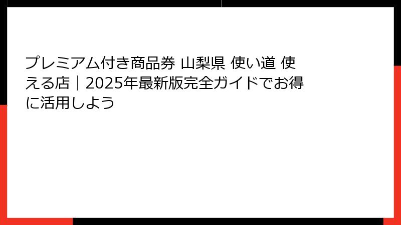 - プレミアム付き商品券の使い道:山梨県で活用できるシーンを網羅