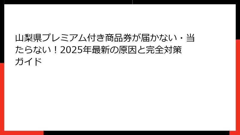 - 山梨県プレミアム付き商品券が届かない・当たらない!2025年最新の原因と対策を徹底解説