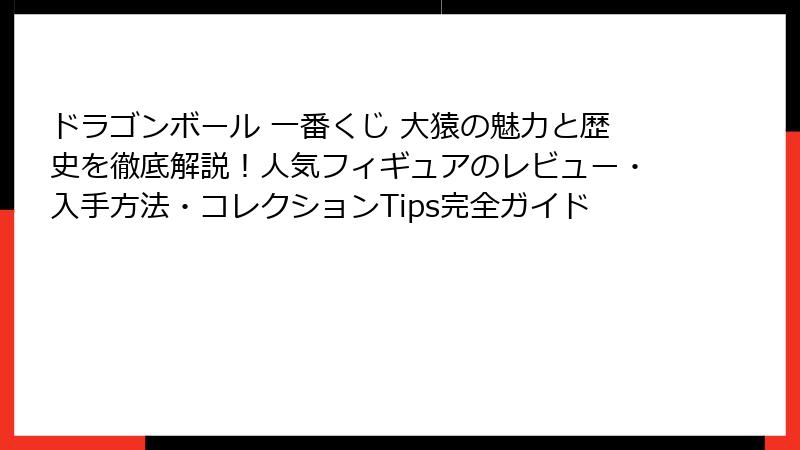 ドラゴンボール一番くじ大猿は、このシステムの中で人気のテーマの一つで、大猿フィギュアが上位賞品として設定されることが多いです。