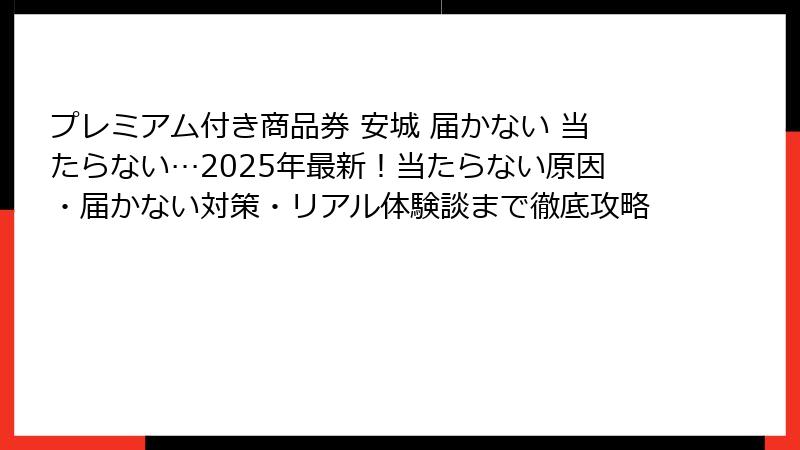 プレミアム付き商品券 安城 届かない 当たらない…2025年最新!当たらない原因・届かない対策・リアル体験談まで徹底攻略