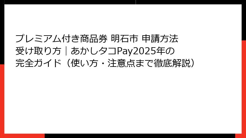 - あかしタコPayの申請方法をステップバイステップで解説!必要な準備から申し込みまで
