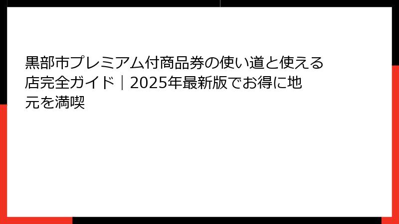 1. 黒部市プレミアム付商品券とは? お得な使い道と使える店を徹底ガイド