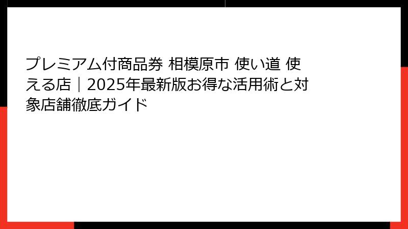 - プレミアム付商品券の使い道アイデア:相模原市で賢く活用するコツ