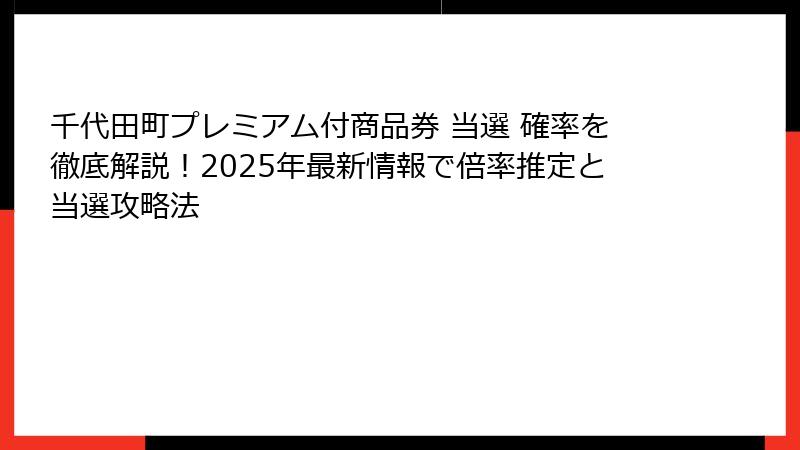 2025年の最新情報に基づき、千代田町プレミアム付商品券 当選 確率をキーワードに、背景から実践的なアドバイスまでを長々とお届けします。