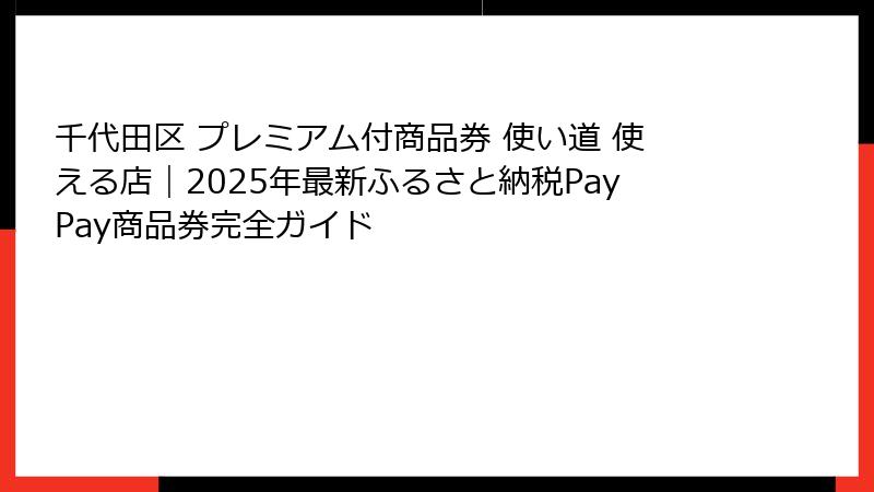 2025年、千代田区ではプレミアム付商品券の直接販売は行われていませんが、ふるさと納税返礼品としてのPayPay商品券が継続中です。