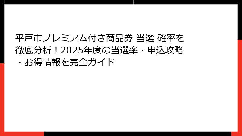 - 当選確率を最大化!平戸市プレミアム商品券の応募Tipsと注意点