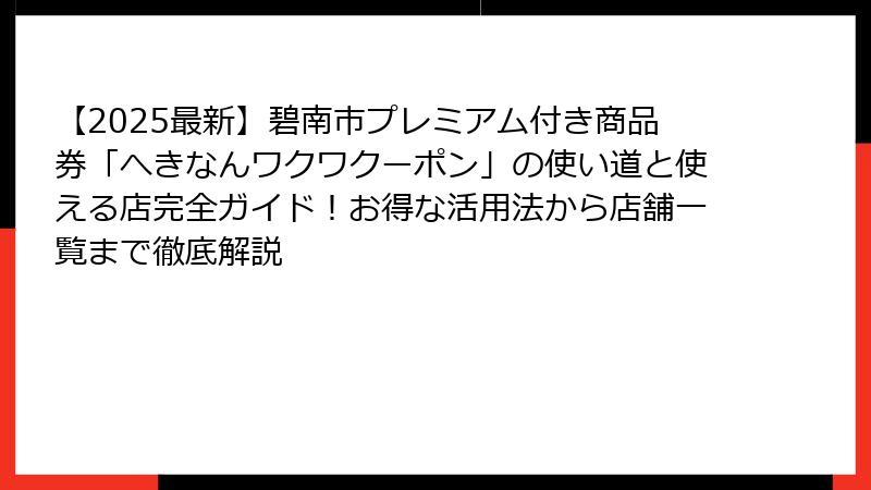 - 碧南市プレミアム付き商品券の使い道:利用方法と条件を徹底解説